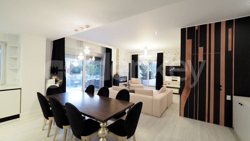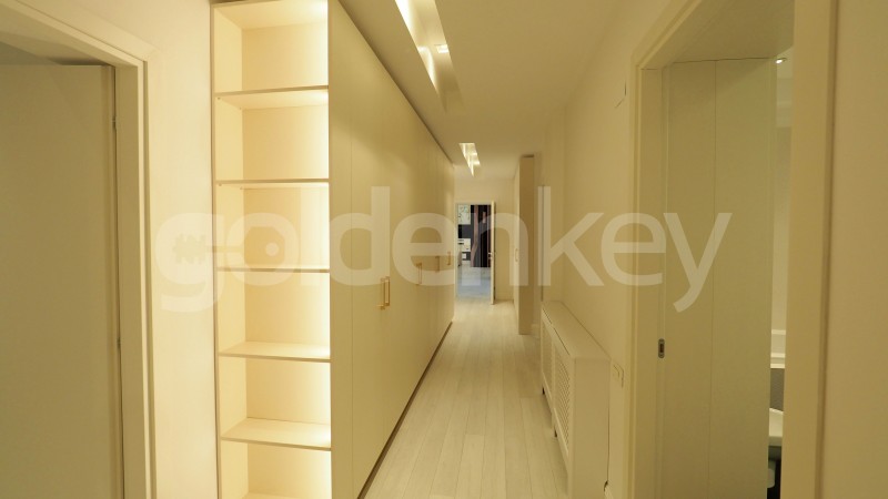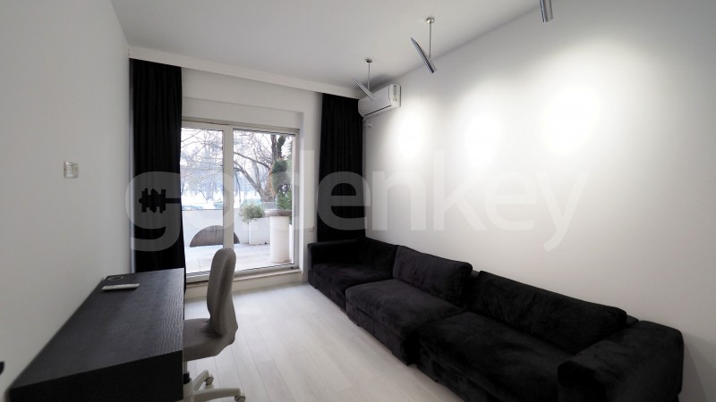 Este compus din living spatios cu iesire pe terasa si zona de dining, bucatarie mobilata si complet echipata, grup sanitar, birou, dormitor matrimonial cu baie proprie si 2 dormitoare secundare ce impart 1 baie.