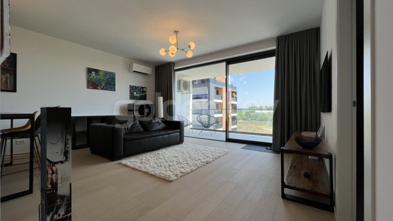 Este compus din living cu zona de dining si iesire pe terasa, bucatarie deschisa, dormitor si baie.