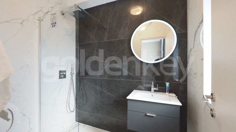 Este compus din living spatios cu zona de dining si bucatarie de 37mp, dormitor matrimonial de 14mp cu baie de 7mp, 2 dormitoare secundare (12/12) care impart o baie cu dus si un birou/dressing de 7mp.
