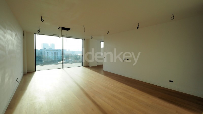Situat la etajul 4, cu vederi panoramice catre lac si parcul Verdi, acest apartament are o suprafata construita de 181mp dintre care 130mp utili si 28mp terasa.