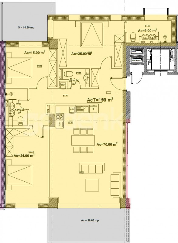 dormitor secundar cu baie si terasa de 10mp. Poate fi transformat in 4 camere.