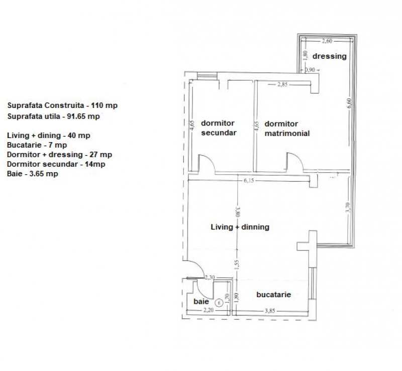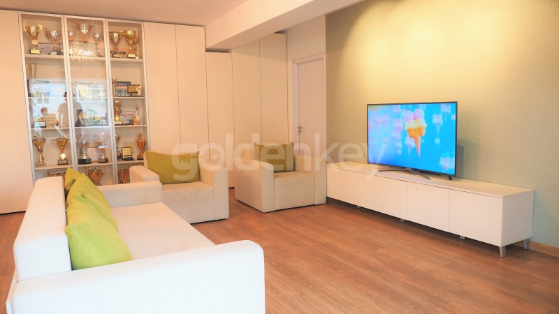 It consists of living room with dinning area ( 40 sqm), open kitchen, master bedroom with dressing room (27 sqm), secondary bedroom and bathroom.