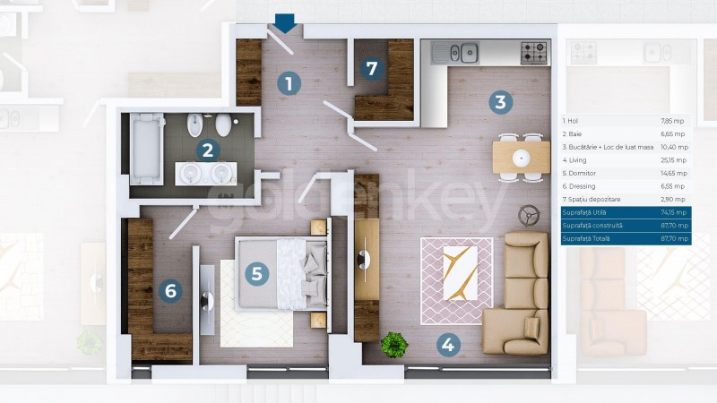 Located in Floreasca area, near Verdi Park, this 1 bedroom apartment is on the ground floor of a building Ug+Gf+8 that will to be completed in May 2019.