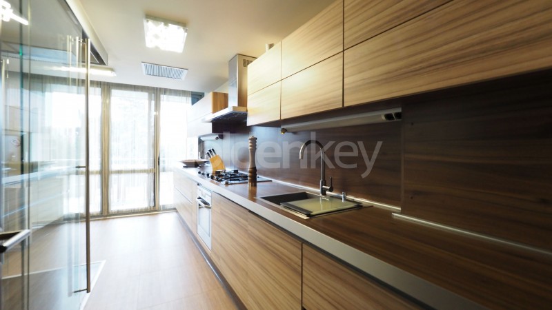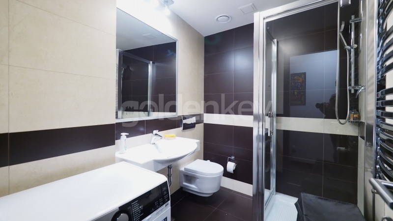 This apartment has an usable area of 111sqm and is composed of a large living room with dining area and exit on the terrace, equipped kitchen, master bedroom with en suite dressing and bathroom, secondary bedroom and 2nd bathroom.