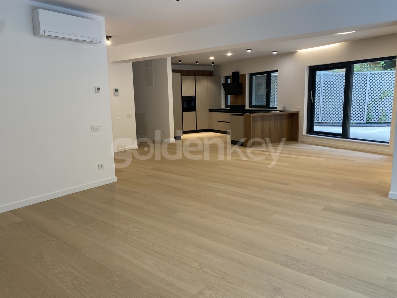 Located in Primaverii area, on a quiet street full of greenery, this 3 bedrooms apartment is on the ground floor of an Ug+Gf+5 building.