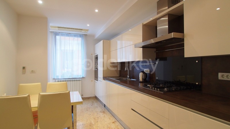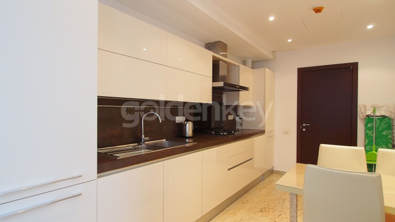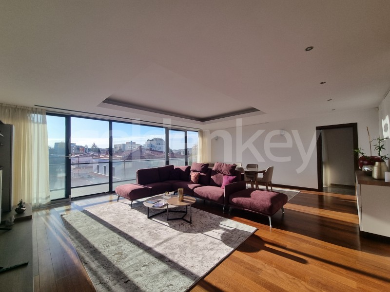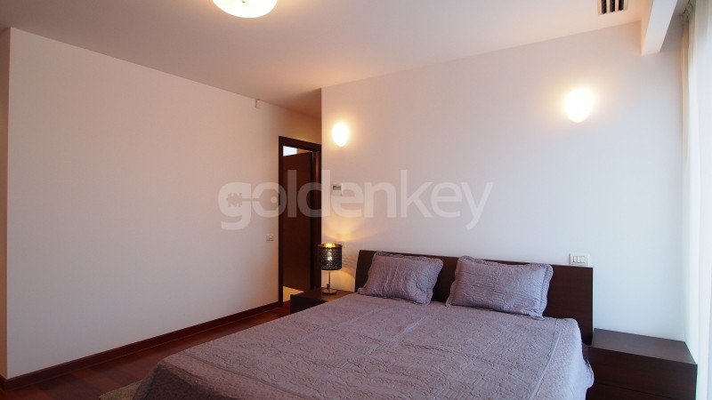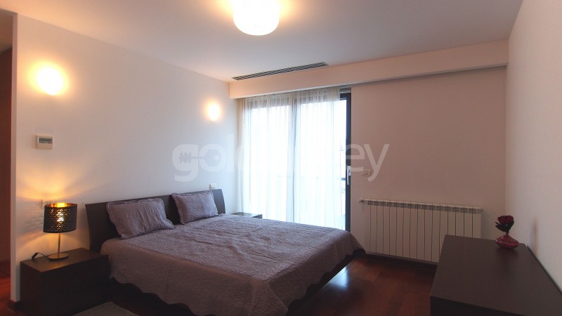 It consists of generous living room with dining area and exit on the terrace, furnished and fully equipped kitchen, guest toilet, master bedroom with dressing area, en-suite bathroom and exit on the terrace, secondary bedroom with exit on the terrace and bathroom in the hallway.